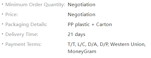 2) We will start to have mass production when confirm our sample and 30% T/T deposit received.
